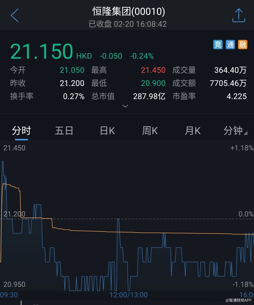 截至发稿,恒隆集团跌0.24%,报21.15港元。