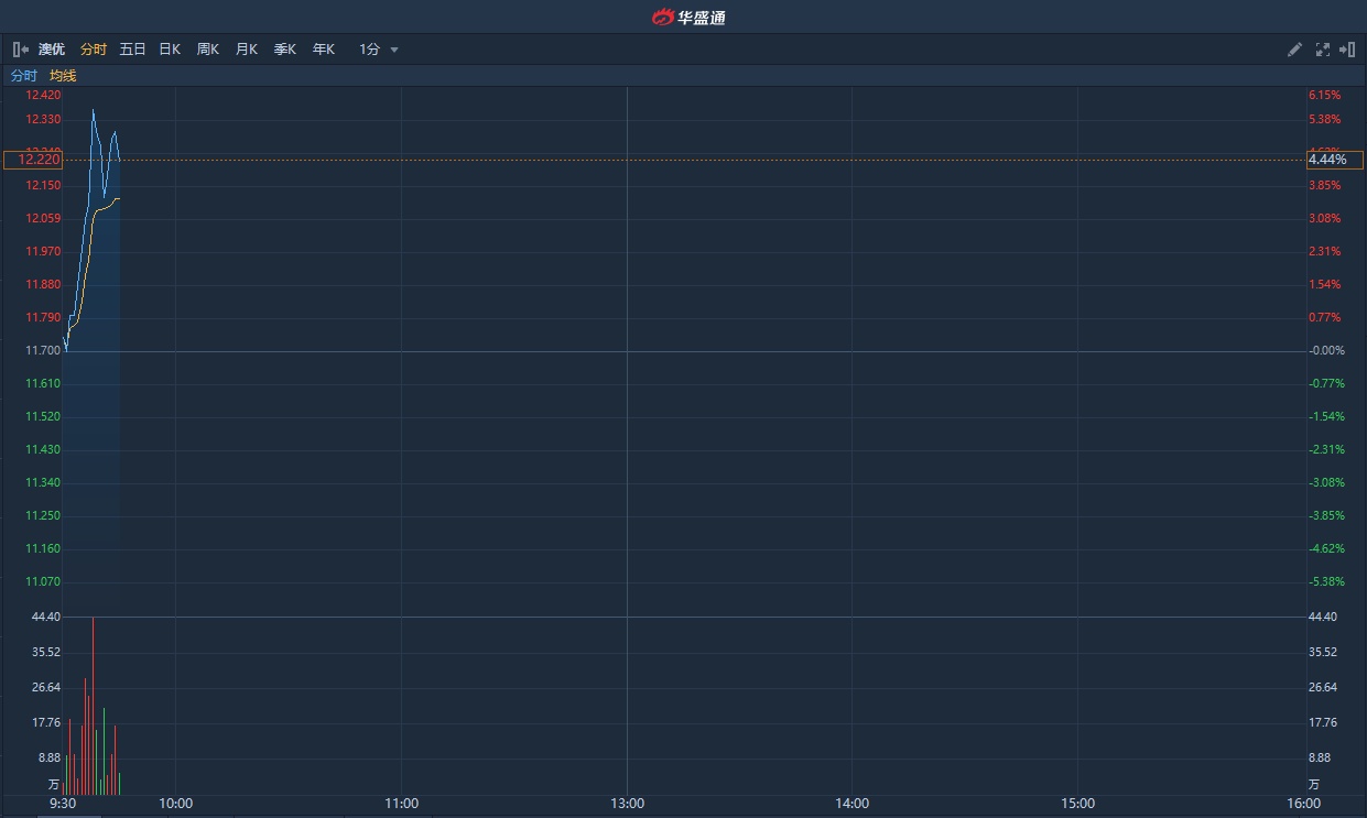 智通财经APP获悉,澳优(01717)于本月19日午间发布盈喜,预计2019年度股东应占利润增加33.6%至38.3%。盈喜后股价暂现三连阳,累积涨幅超20%。截至发稿,涨4.79%,报12.26港元,成交额2888.28万港元。