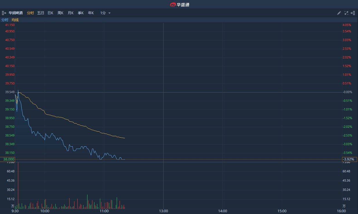 智通财经APP获悉,中信建投近日发研报指,公共卫生事件对行业中长期增长逻辑不构成冲击,短期看今年销量可能有损失,行业全年销量或下滑6%,从而影响了今年的业绩表现。华润啤酒(00291)早盘走弱,截至发稿,跌3.92%,报38港元,成交额2.52亿港元。