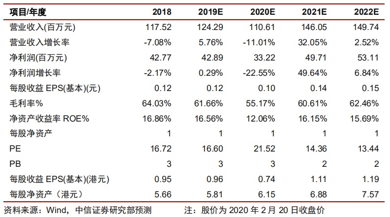 投资建议:综合考虑公共卫生事件对短期影响和中长期恢复趋势,我们调整 2020-2021年EPS预测至0.10/0.14美元(原预测为 0.14/0.15美元),新增2022年EPS预测0.15美元。当前股价15.74港元,对应2020-22年PE为 21.52/14.36/13.44 倍。