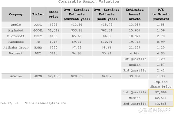 所以,很难相信,但事实就是如此:亚马逊仍然被低估了。根据目前的市场预期,亚马逊的股价很有可能在今年年底超过2500美元。