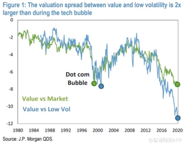 这场震动的因素似乎是动量/分钟、成交量/防御性指数,以及价值/周期性指数之间巨大估值脱节的开始。换言之,看起来Marko Kolanovic几个月前发出的呼吁开始发挥作用。