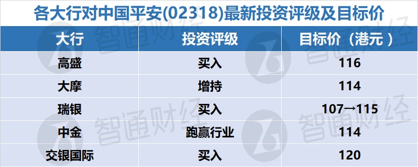 一、各大行对中国平安(02318)最新投资评级及目标价
