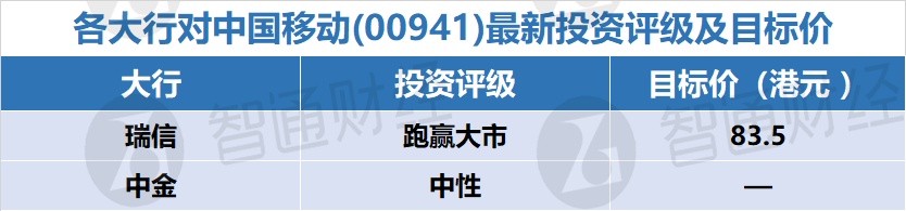 二、各大行对中国移动(00941)最新投资评级及目标价