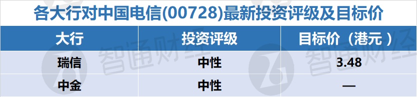 三、各大行对中国电信(00728)最新投资评级及目标价