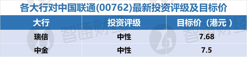 四、各大行对中国联通(00762)最新投资评级及目标价