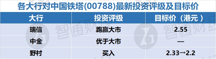 五、各大行对中国铁塔(00788)最新投资评级及目标价