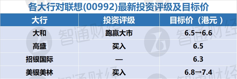 六、各大行对联想(00992)最新投资评级及目标价