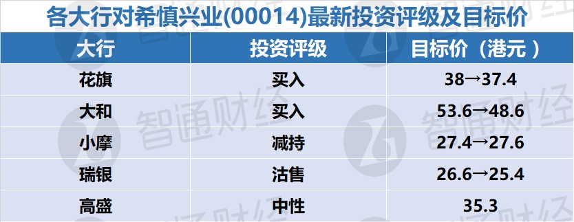 七、各大行对希慎兴业(00014)最新投资评级及目标价