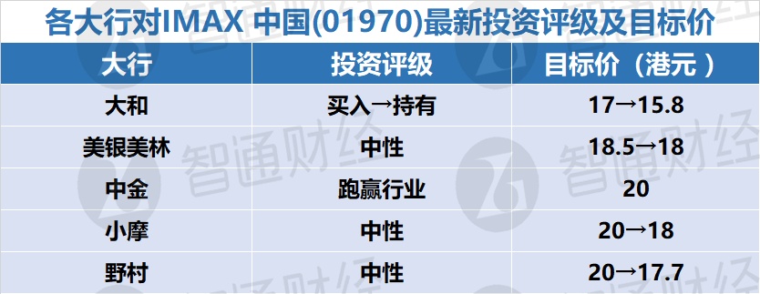 八、各大行对IMAX 中国(01970)最新投资评级及目标价