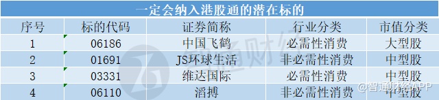 一、已纳入恒生综合大中型指数成分股,一定会纳入港股通标的4家公司