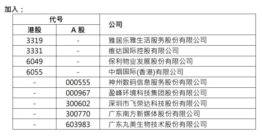 加入雅居乐雅生活服务股份有限公司(03319)、维达国际控股有限公司(03331)、保利物业发展股份有限公司(06049)、中烟国际(香港)有限公司(06055)等;