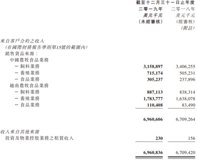 智通财经APP,于中国、越南两地开展动物饲料、养殖及食品加工业务的卜蜂国际,在2020年2月20日交出了过去一年的经营业绩答卷。业绩公告显示,得益中国养殖及食品业务的良好表现,加上越南猪价整体上涨,以致越南养殖业务的利润率增加,以及生物资产公允值录得正变动净额增长,公司2019年全年在营收同比小幅增长3.75%至69.6亿美元基础上,归属公司股东溢利达到了3.46亿美元,同比大幅增长22.8%。