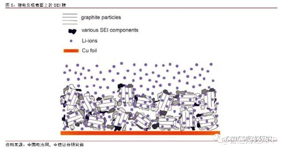 锂离子电池在首次充放电时,会形成SEI膜,消耗锂导致效率损失。SEI英文全称是Solid Electrolyte Interphase,也就是大家常说的固体电解质界面膜。锂离子电池在首次充放电时,电解液中少量极性非质子溶剂在得到部分电子后发生还原反应,与锂离子结合反应生成一种厚度约100-120nm的界面膜,这个膜就是SEI。SEI通常形成于电极材料与电解液之间的固液相界面。现在三元电池的首次效率一般在85-90%。