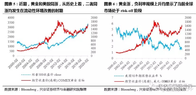 历史上看,二者同涨大部分时间发生在基本面预期较差而对流动性环境改善的预期较强的时期,比如在09年及此后的量化宽松阶段;2019年5月之后阶段性美股黄金同涨行情。