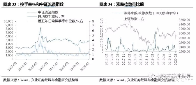 换手率:本周,A股日均换手率为2.01%,高于近五年以来的中位数1.18%;截至本周五,涨停家数/跌停家数比(10日移动平均)为13.1,处于2013年以来的84%分位数水平。