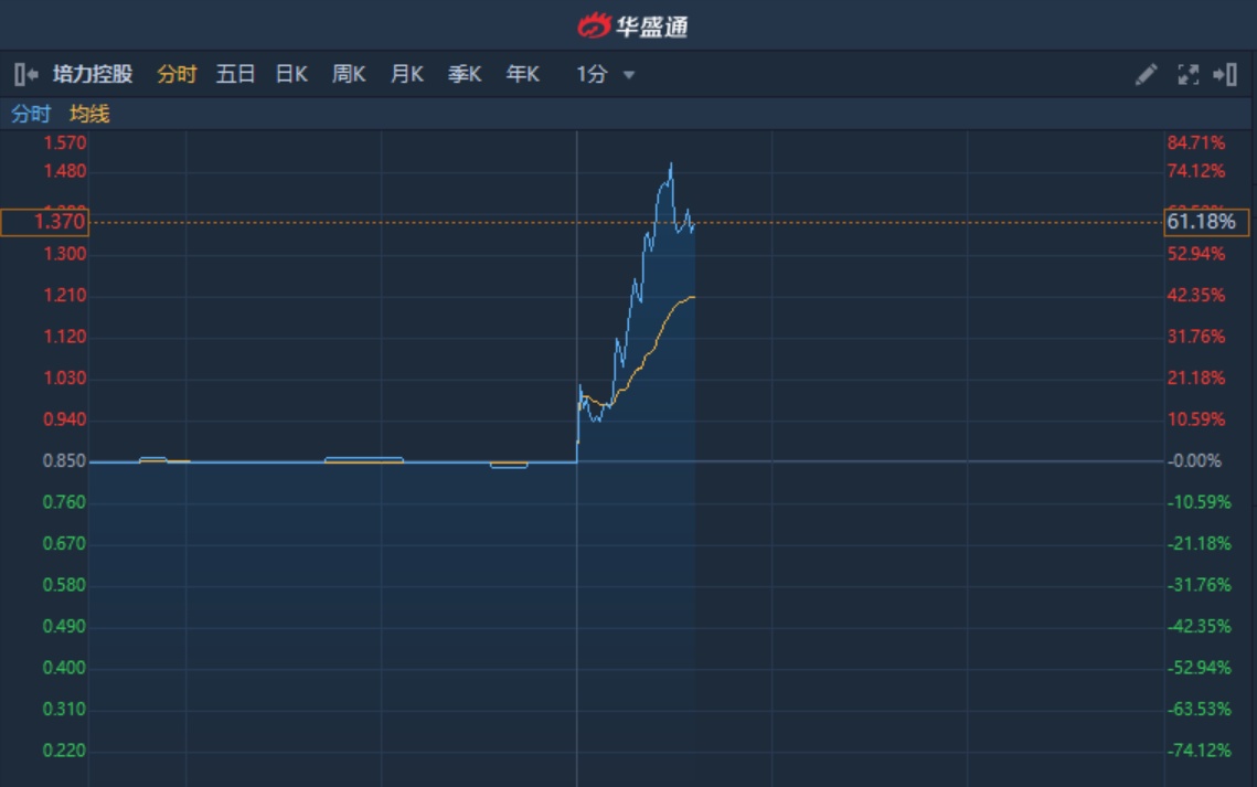 智通财经APP获悉,培力控股(01498)附属受委托生产清肺排毒汤颗粒用于治疗肺疫患者,截至13时35分,涨61.18%,报价1.37港元,成交额1418万。
