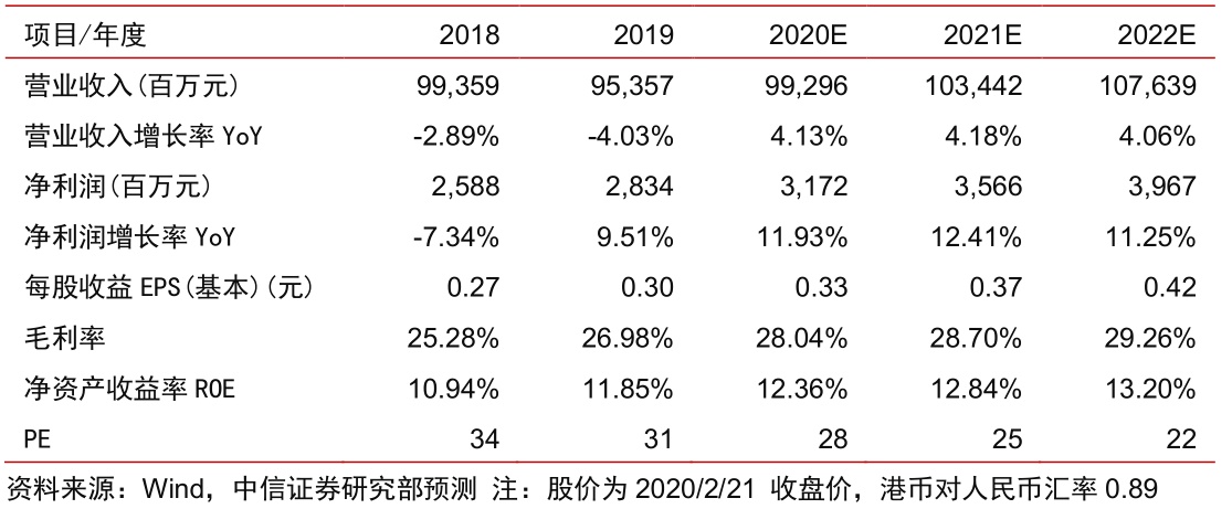 2020年B2C目标日均订单量同比+50%, 持续推进门店改造和双品牌整合。19年公司新开7家大润发门店、关闭5家欧尚门店,总门店数达486家。20年公司计划开业5~10家综超,预计全年大店(大卖场+综超)开业数有望超过20家。门店日均订单持续提升、与菜鸟驿站合作社区团购、猫超共享库存发力,20年B2C业务目标日均订单量+50%、B2B+B2C收入占比提升5pcts至20%、全年同店保持正增长。19年改造门店10家,改造后生鲜品类收入10%+;我们预计20年改造提速,全年改造50家。大润发和欧尚整合效益已显,19年欧尚总部费用下降1亿,毛利率逐月提升;我们预计20年整合深化,欧尚总部费用有望继续下降2亿。