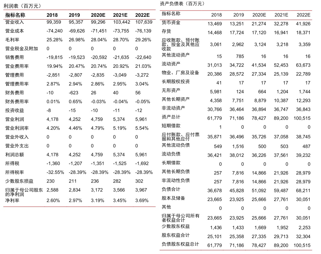 风险因素:消费低迷,多元业态冲击加剧,新零售业务进展不达预期。