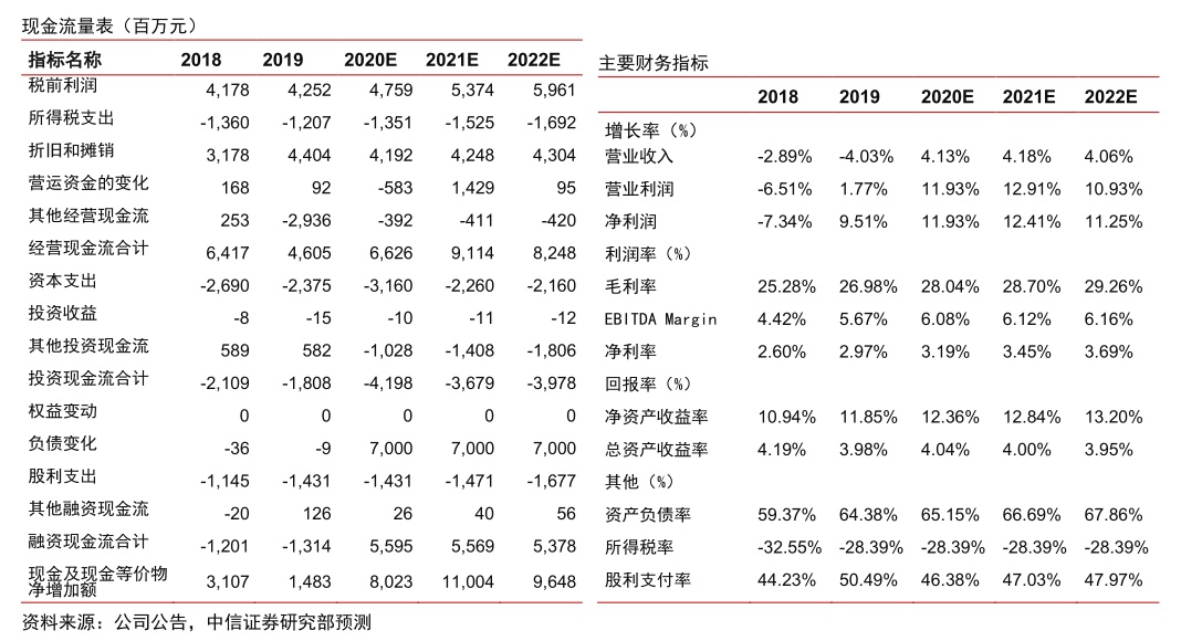2019年入营业收入/归属净利润同比-4.0%/+14.4%,EBIT同比+4.1%。受家电业务由自营转为苏宁代销影响,19H1/H2公司营业收入分别-6.4%/-1.2%;其中19H1/H2商品销售收入分别同比-7.0%/-1.5%,租金收入分别同比+8.8%/+5.4%。子公司从亏损转为盈利、递延所得税资产抵税,19年公司有效税率下降4.45pcts至28.39%。19H1/H2,公司归属净利润分别同比+5.0%/+34.2%,EBIT分别+3.2%/+5.6%;剔除预付卡收入的影响,19A/19H1/19H2公司税前利润同比+10.1%/+6.8%/+16.3%。不考虑新租赁准则实施的影响,19年公司归属净利润/EBIT同比+11.9%/+4.0%。