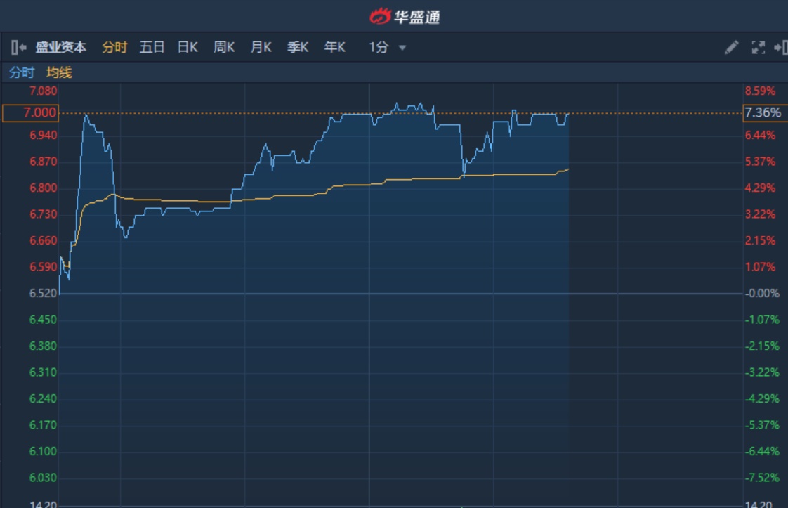 智通财经APP获悉,盛业资本(06069)获纳入恒生综合指数,盘中突破多条均线。截至14时35分,涨7.36%,报价7港元,成交额1354万。
