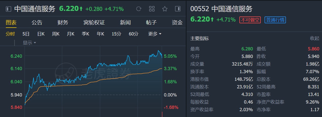 智通财经APP获悉,大摩发布报告称,相信中国通信服务(00552)未来30天股价将上升,预计发生此概率逾80%,予其“增持”投资评级及目标价7港元。