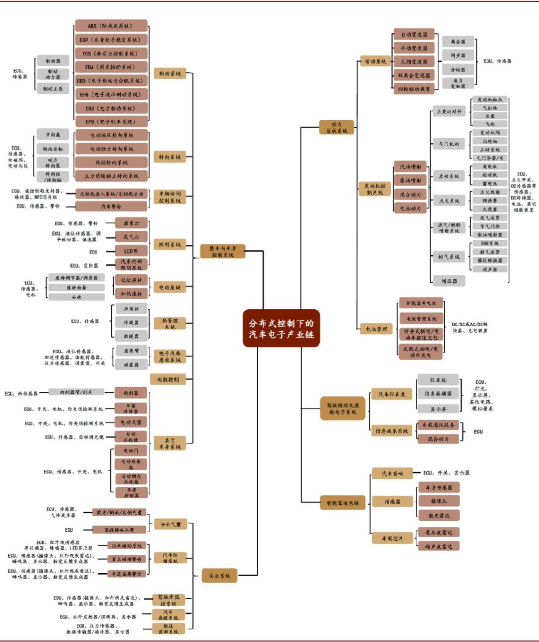 图表: 当前分布式电气架构下的汽车电子产业链一览