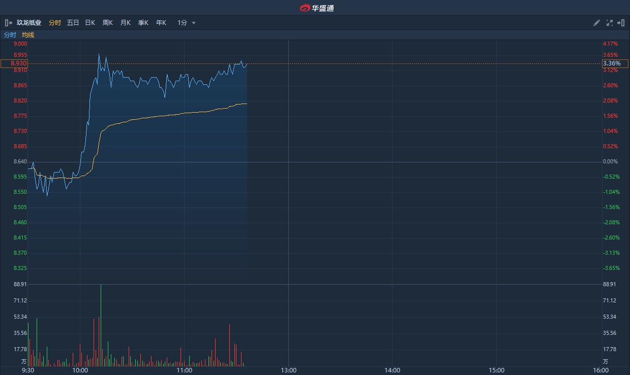 智通财经APP获悉,瑞信发表研究报告称,玖龙纸业(02689)2020上半财年盈利表现胜市场预期,期内纯利23亿元人民币, 同比增0.5%。该行认为,集团的定价能力强、具成本优势、有新增产能,以及市场预期较低。该行表示维持对其“跑赢大市”评级,目标价11.8港元。截至发稿,涨3.24%,报8.92港元,成交额1.05亿港元。