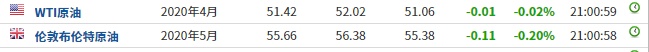 截至发稿,WTI原油跌0.02%,报51.42美元/桶。布伦特原油跌0.20%,报55.66美元/桶。