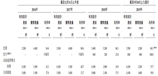 从产能上来看,深蓝科技的色浆生产线的利用率已超过80%,而近年来公司在着色剂的色浆上的产能逐渐扩大,并于2018年拓展了色片业务,虽然表面处理剂及助剂的产能和销量均有所下滑,但合成树脂的产能有小幅扩张。