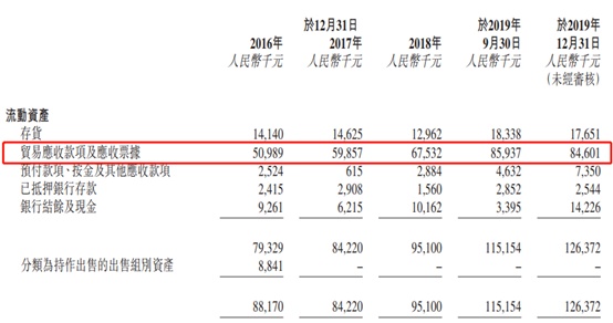 此外,因为公司的销售的绝大部分为信贷销售,据此,公司将于交付产品后向客户收款。智通财经APP观测到,公司的贸易应收款项及应收票据2016年的5098.9万迅速猛增至2019前三季度时的8460.1万元,该类应收款项较多,将给公司现金流的正常运转和回款造成一定的压力。