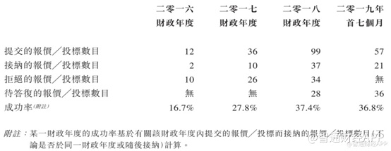 据智通财经APP观察,澳达控股近两年的项目中标率有所提升,2016年至2019年前7个月投标成功率分别为16.7%、27.8%、37.4%和36.8%,当然数量只是一个方面,质量是另一个需要考虑的方面。