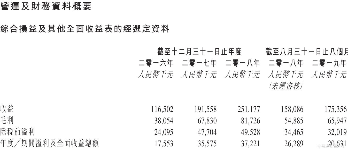 2016-2018年,烨星集团分别实现收益约1.17亿元、1.92亿元、2.51亿元;纯利分别为1760万元、3560万元、3720万元;毛利率分别为32.7%、35.4%、32.5%。截至2019年8月末,公司净资产3278.7万元,在手现金2138.7万元。