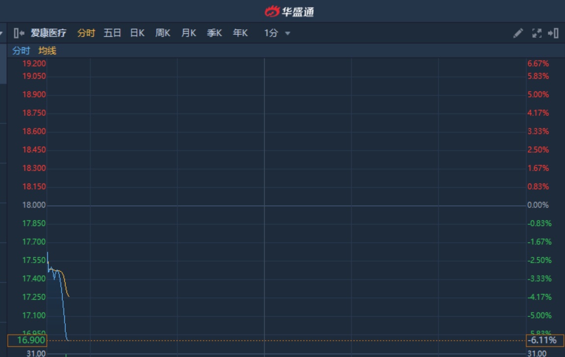 智通财经APP获悉,爱康医疗(01789)新高后股价高位回落,早盘急挫逾6%,截至9时44分,跌6.11%,报价16.9港元,成交额3943万。