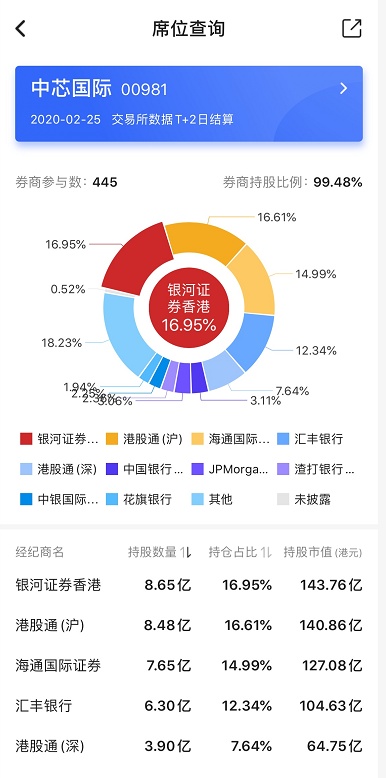 (互联互通南下资金持仓中芯国际已经排名前列 数据来源:智通财经APP)