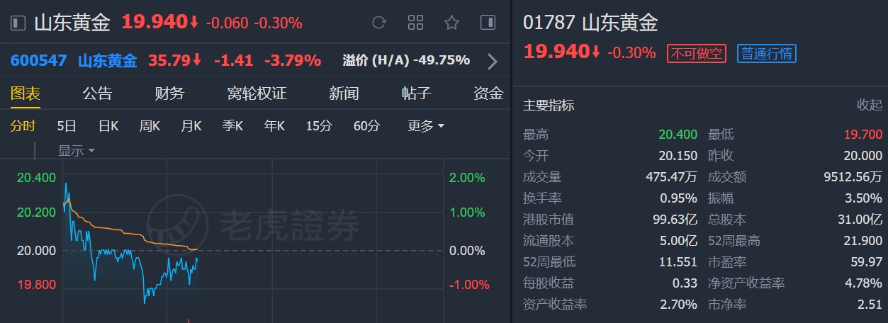 智通财经APP获悉,瑞信发布报告称,将山东黄金(01787)评级由“中性”升至“跑赢大市”,H股目标价由16.1港元上调61.5%至26港元,将2020-2021年盈利预测分别上调20%及17%。