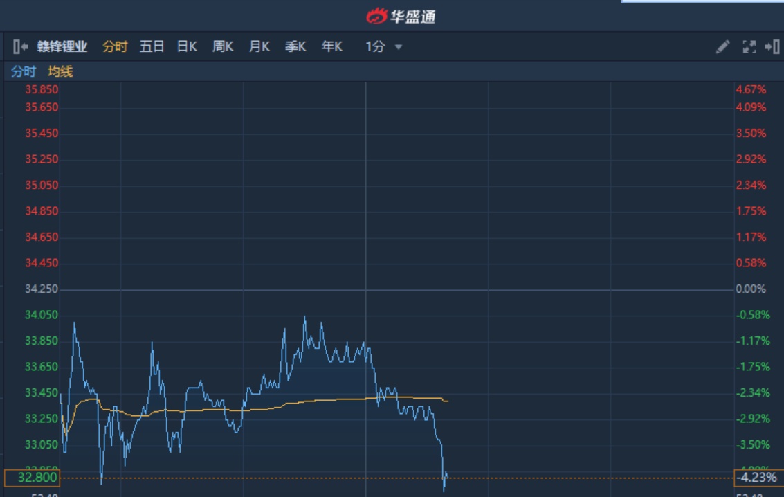 智通财经APP获悉,赣锋锂业(01772)遭大摩削至“减持”评级,目标价22.9港元,截至13时39分,跌4.23%,报价32.8港元,成交额3.392亿。