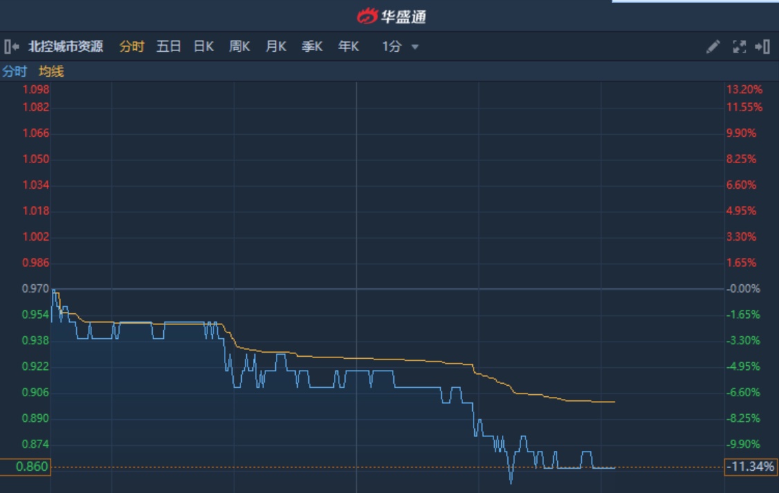 智通财经APP获悉,次新股北控城市资源(03718)结束五连阳,新高后股价大幅下挫,截至15时06分,跌11.34%,报价0.86港元,成交额2520万。值得注意的是,该股此前五个交易日,累计涨幅超34%。