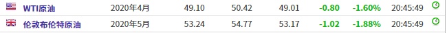 截至发稿,WTI原油跌1.60%,报49.10美元/桶。布伦特原油跌1.88%,报53.24美元/桶。