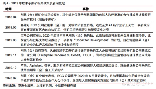 刚果(金)加强手抓矿管理,未来手抓矿供应弹性减小。
