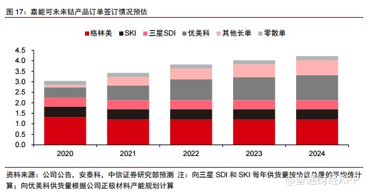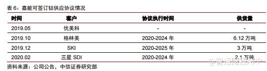 2)2019年10月,嘉能可与格林美签订5年6.12万吨的钴供应协议,其中2020-2024年间每年供应量为1.2万金属吨;