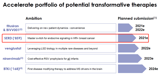 SAR439859二线治疗ER+/HER2-乳腺癌患者的II期临床数据预计于2020年底前公布,如果成功,将支持赛诺菲在2021年递交新药申请。
