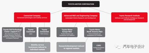 1)日本本部包括丰田汽车公司和中烟研究与开发实验室,这块是本部逻辑,面向整合和项目的。2)美国:丰田在美国是重要的研发机构,首先是10亿美金投资的丰田研究所,由Gill Pratt 领导,主要负责自动驾驶和AI的研究机构。还有丰田汽车北美研发(TMNA R&D):在密西根,这个和自动驾驶没太大关系,主要涵盖产品开发等工作;丰田合作安全研究中心(CSRC):与美国的大学、研究机构,重点研究是自车辆的新型安全技术和研究项目。Toyota Connected:在运营中提供了一系列数据和计算机科学服务;丰田IT开发中心是一个支持性的部门。