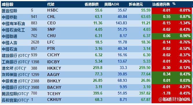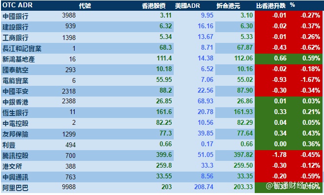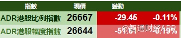 智通财经APP获悉,美股个别发展,港股ADR指数全日无方向,按比例计算,收报26,667点,跌29点。