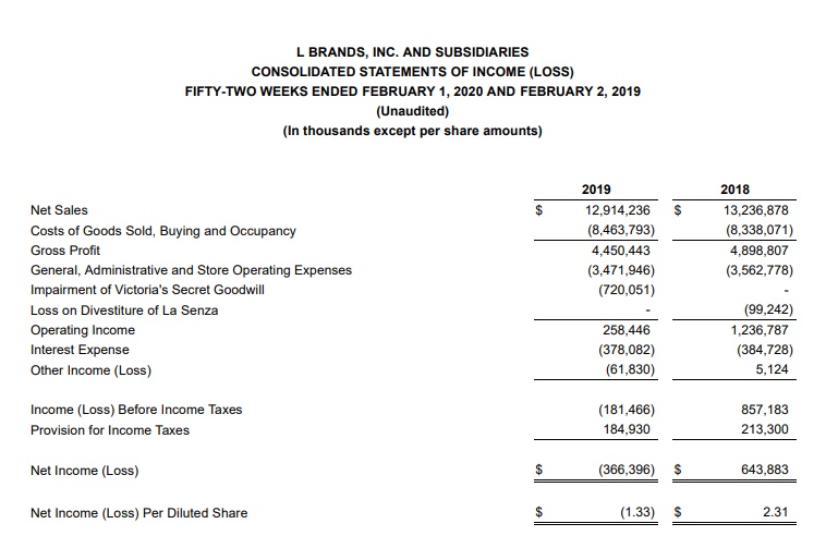 智通财经APP获悉,2月26日美股盘后,L Brands(LB.US)公布了2019年第四季度及全年财报。