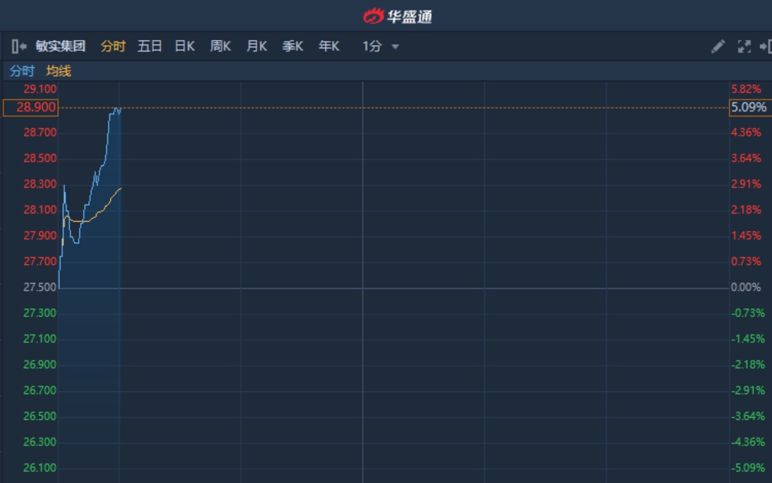 截至10时00分,涨5.09%,报价28.9港元,成交额5972万。值得注意的是,该股暂现三连阳,累计涨幅近20%。
