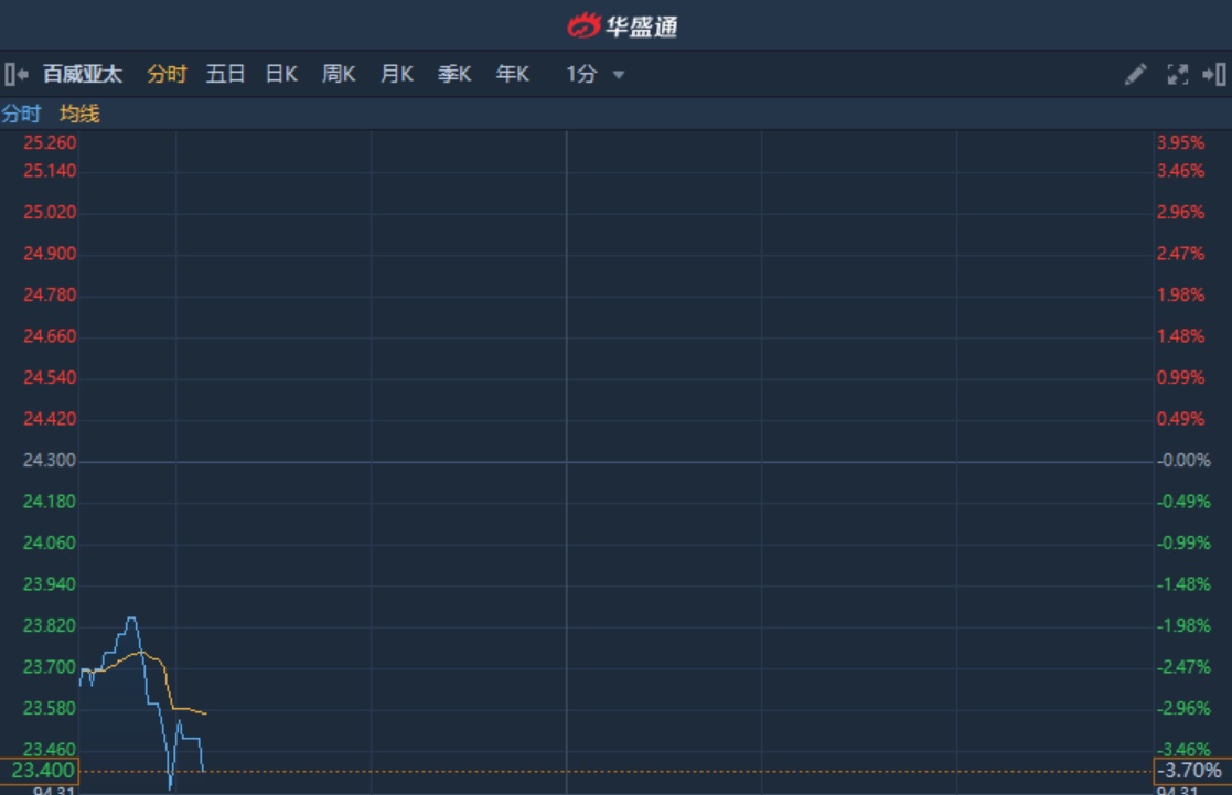 智通财经APP获悉,百威亚太(01876)早间发布2019年度业绩,股权持有人应占利润同比下滑6.2%至8.98亿美元,不及市场预期,截至10时12分,跌3.7%,报价23.4港元,成交额1.511亿。