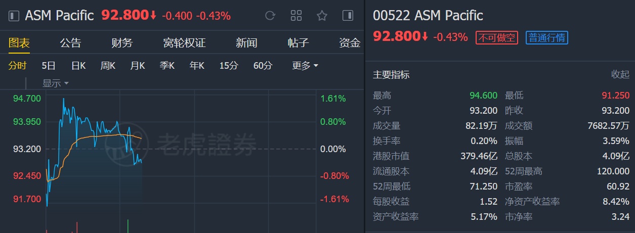 智通财经APP获悉, 麦格理发布报告称,ASM太平洋(00522)去年第四季业绩胜预期,该股股价由1月20日的高位调整了22%,现价为2021年预测市盈率18至19倍,估值算合理,故将其评级由“跑输大市”上调至“中性”,目标价维持85港元。