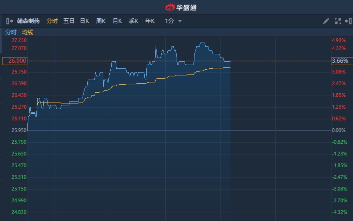 智通财经APP获悉,翰森制药(03692)获国金证券首予“买入”评级,目标价30.7港元。该股午后一度涨近5%,截至14时05分,涨3.66%,报价26.9港元,成交额5833万。