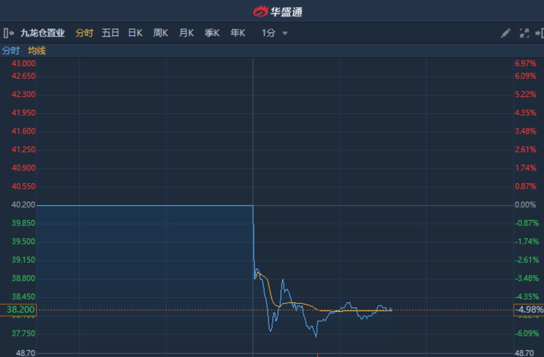 智通财经APP获悉,九龙仓置业(01997)午间发布公告称,会德丰(00020)拟私有化及就公司股份进行实物分派。该股午后复牌,股价遭重创,暂领跌蓝筹。截至14时35分,跌4.98%,报价38.2港元,成交额3.078亿。